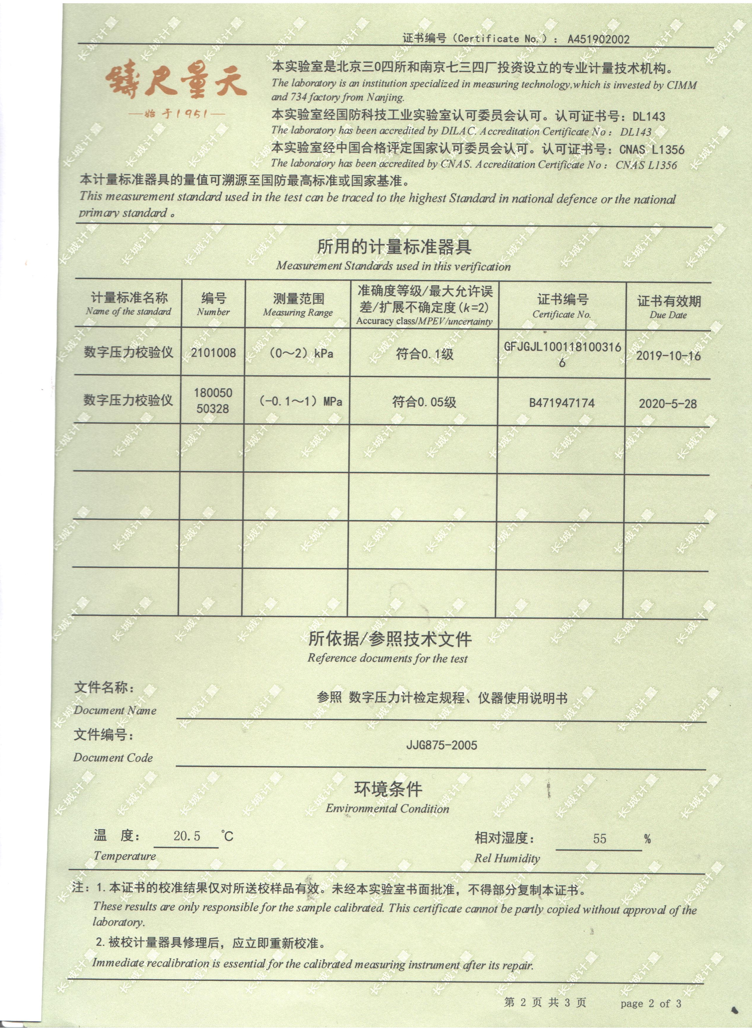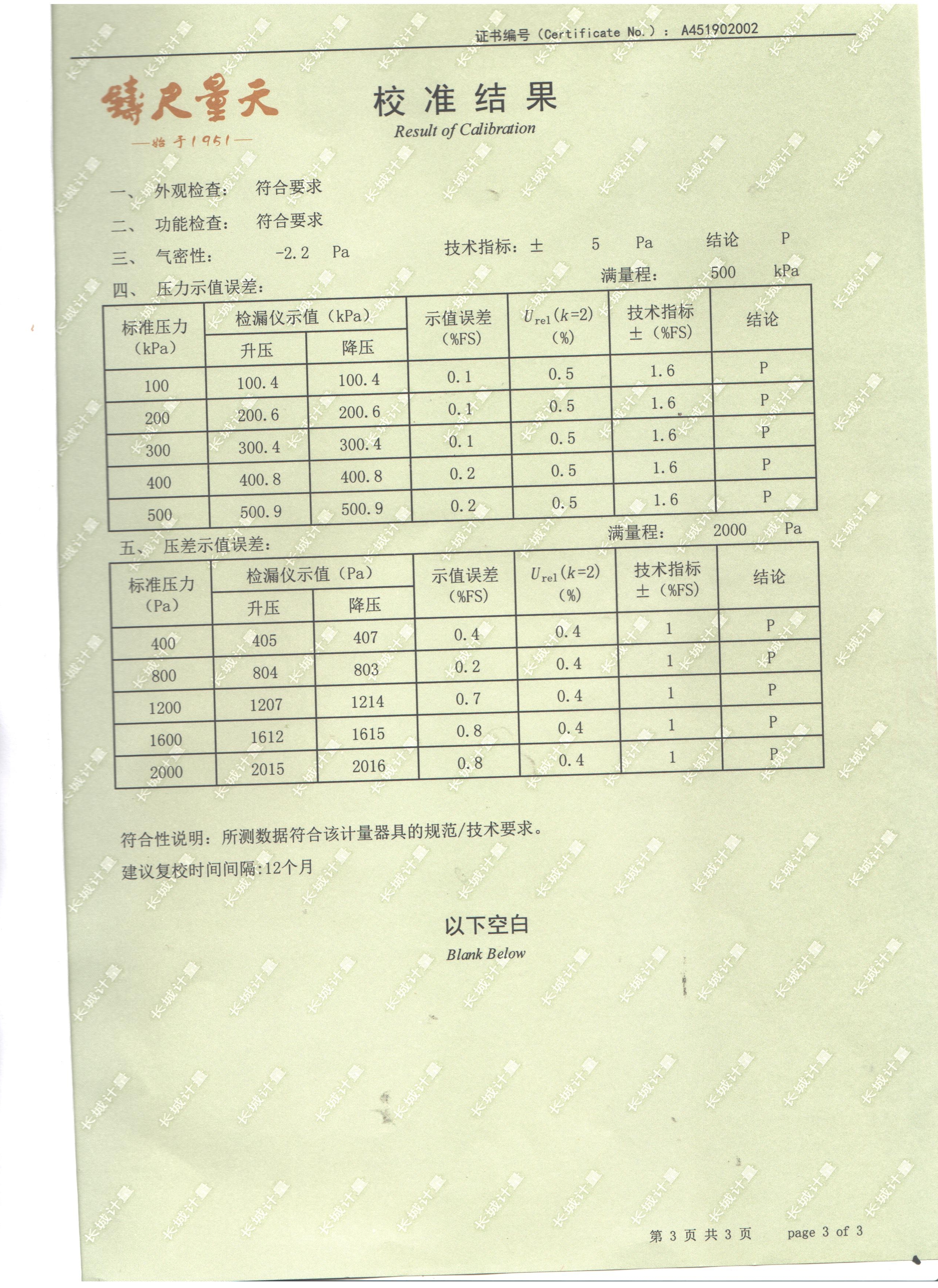 近期(qī)我司(sī)氣密性檢測儀在第三方計量所計量(某軍工電子301計量測試站)檢測結果符合規定;