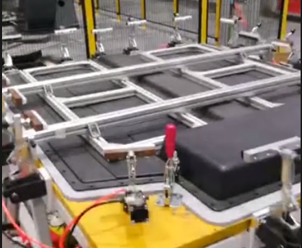 在組裝完成後,在安裝電池模塊和熱管理係統之(zhī)前,托盤會被(bèi)檢(jiǎn)查為空的。托盤很重(chóng),所以很難(nán)定位部件。